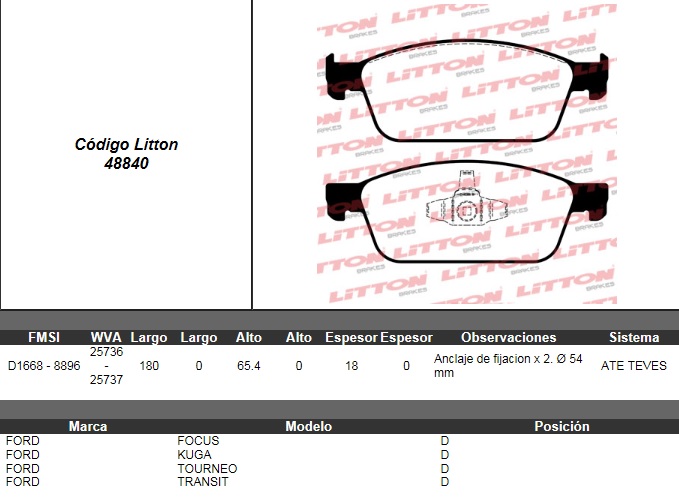 PASTILLA DE FRENO FORD FOCUS II GHIA EXE 2.0 12>- KUGA 2.5 T TREND 12>- TRANSIT 2.2/2.4 TD 12> DEL. ULT. (1117) |