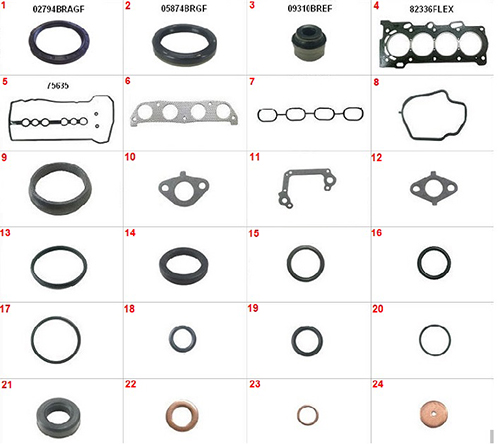 JUNTA JGO.MOTOR COMP.C/R. TOYOTA COROLLA-FIELDER 1.8 16V.1ZZFE FIBRA |