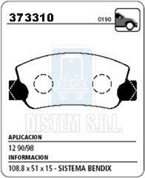 PASTILLA DE FRENO RENAULT 12 BREAK C/PELLIZCOS NA (0190) |