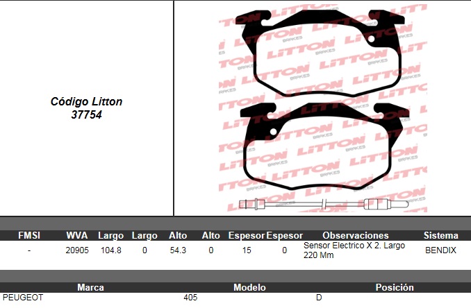 PASTILLA DE FRENO PEUGEOT 405 90/94 (CHILENO) DEL. C/SENSOR ULT. (0324) |