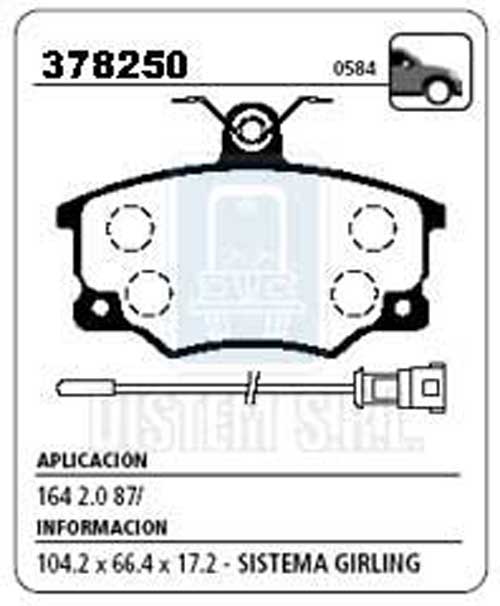 PASTILLA DE FRENO ALFA ROMEO 164 2.0 C/S 87/DEL. NA (0584) |