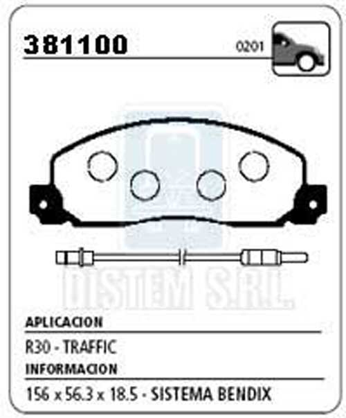 PASTILLA DE FRENO RENAULT TRAFIC R30-RODEO NA (0201) |