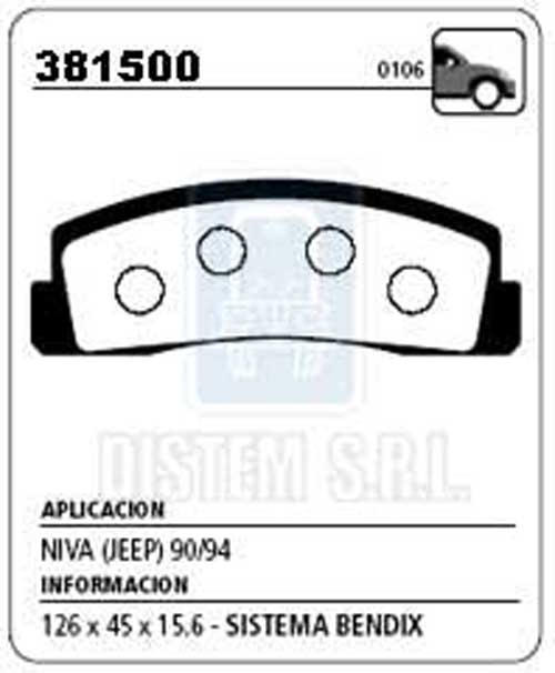 PASTILLA DE FRENO LADA NIVA 4X4 NA (0106) |