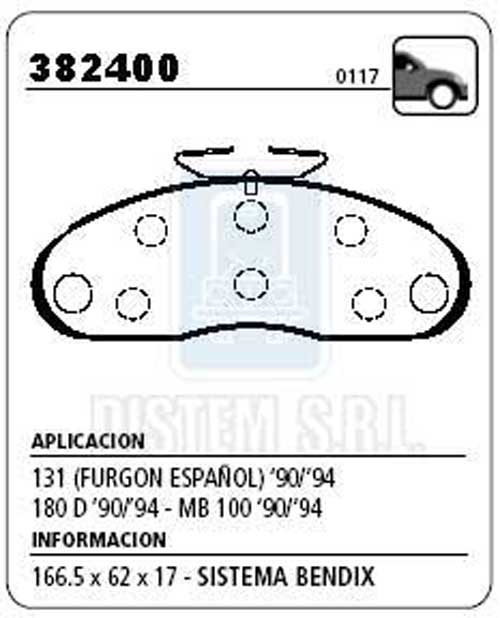 PASTILLA DE FRENO MERCEDES BENZ 180 D-NISSAN EBRO NA (0117) |