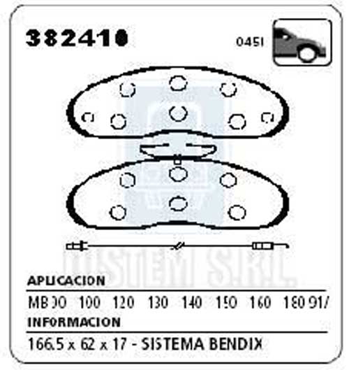 PASTILLA DE FRENO MERCEDES BENZ 180 D-100-131 C/ROSCA NA (0451) |