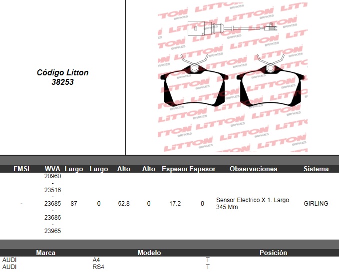 PASTILLA DE FRENO VW. GOLF 2.0 00>07- GOLF 1.8T 00>04- BORA 2.0 99>09- BORA 1.8T / PEUGEOT 307 SW 03>08- 307 XR/XS/XT 2.0L 03>08 / AUDI A3 99>01- A4 QUATTRO 01>04- TT 00>TRAS. ULT. (0184) (PD/59) |