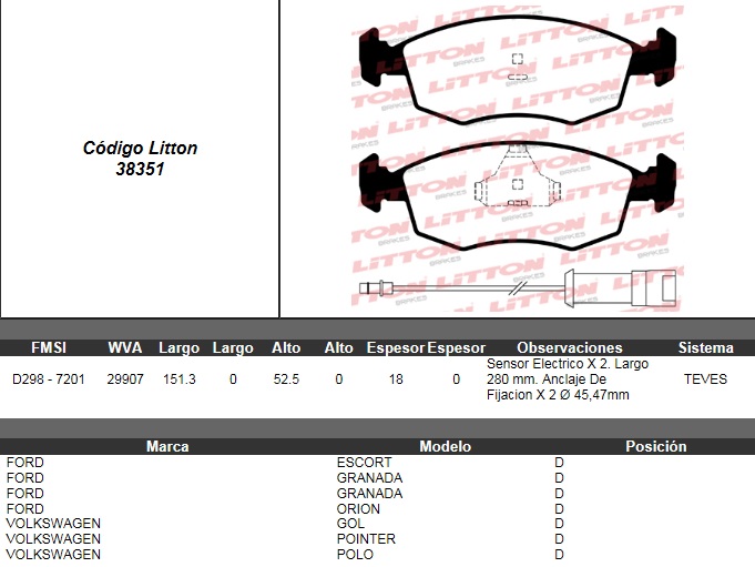 PASTILLA DE FRENO FORD ESCORT XR3-VW POINTER C/S NA (0679) |