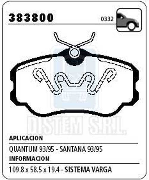 PASTILLA DE FRENO VW. GOL 2.0-GTI 16V-GALAXY GIRLING NA (0332) |