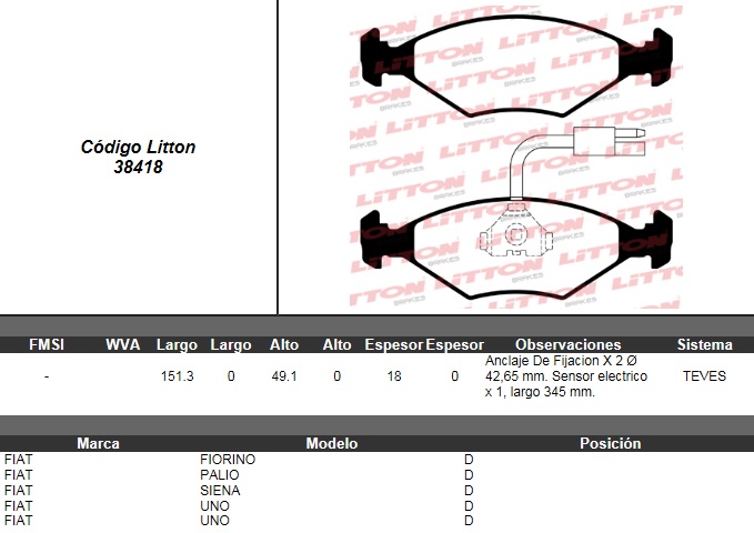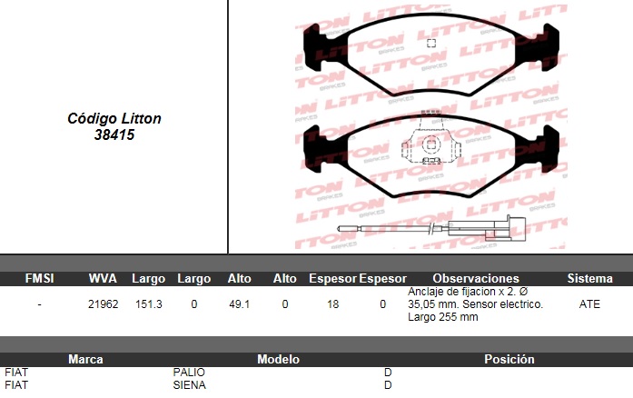 PASTILLA DE FRENO FIAT FIORINO 87>93- UNO 84>96- PALIO ED/EDX 1.0 96>97- 1.5 96>- 1.6 16V 96>97- PALIO WEEKEND 1.5 97>- SIENA EL 1.6/EL 1.6 16V/ HL 1.6 16V 97>- UNO 1.0 FIRE 09/09>09 DEL. ULT. (0302B)