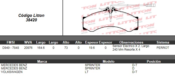 PASTILLA DE FRENO MERCEDES BENZ SPRINTER 412 D. 99> DEL./TRAS. C/SENSOR ULT. (0377) (PD/111-A)