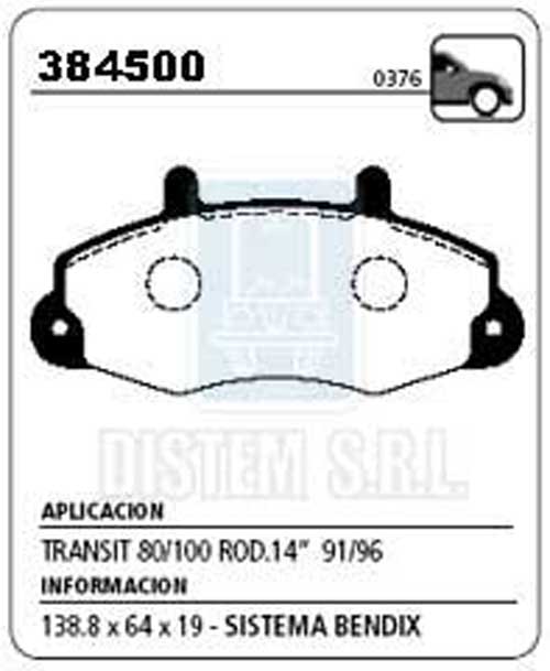 PASTILLA DE FRENO FORD TRANSIT 80/100 M/N RODADO 14` NA (0376) |