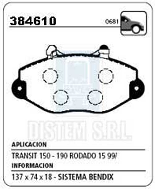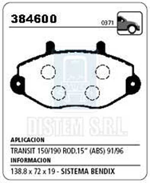 PASTILLA DE FRENO FORD TRANSIT 150/190 RODADO 15`ABS NA (0371) |